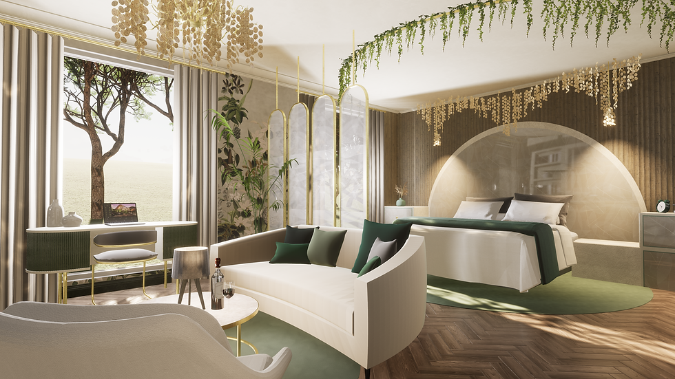 Humans feel most comfortable in a natural environment, and with this room i wanted to reinforce the feeling of well-being with the use of natural materials and biophilic design. Nature in its limitless diversity moves into interior spaces and creates emotions. This space is inspired by flora and fauna particularly utilising textures from nature and adopting these to create a calming interior. This master suite captures the highlights of the natural world.